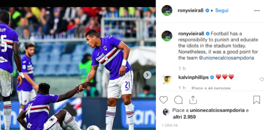 “Il calcio ha la responsabilità di punire, educando gli idioti presenti allo stadio oggi. Detto questo, è stato un buon punto”. Con questa frase diretta e concisa, nello stile di Ronaldo Vieira, il centrocampista della Sampdoria ha voluto rispondere agli insulti razzisti ricevuti dal settore ospiti nella partita contro la Roma. Nato in Guinea-Bissau, in … Leggi tutto Insulti razzisti, la Roma è con Ronaldo Vieira: “Metteremo al bando i responsabili”