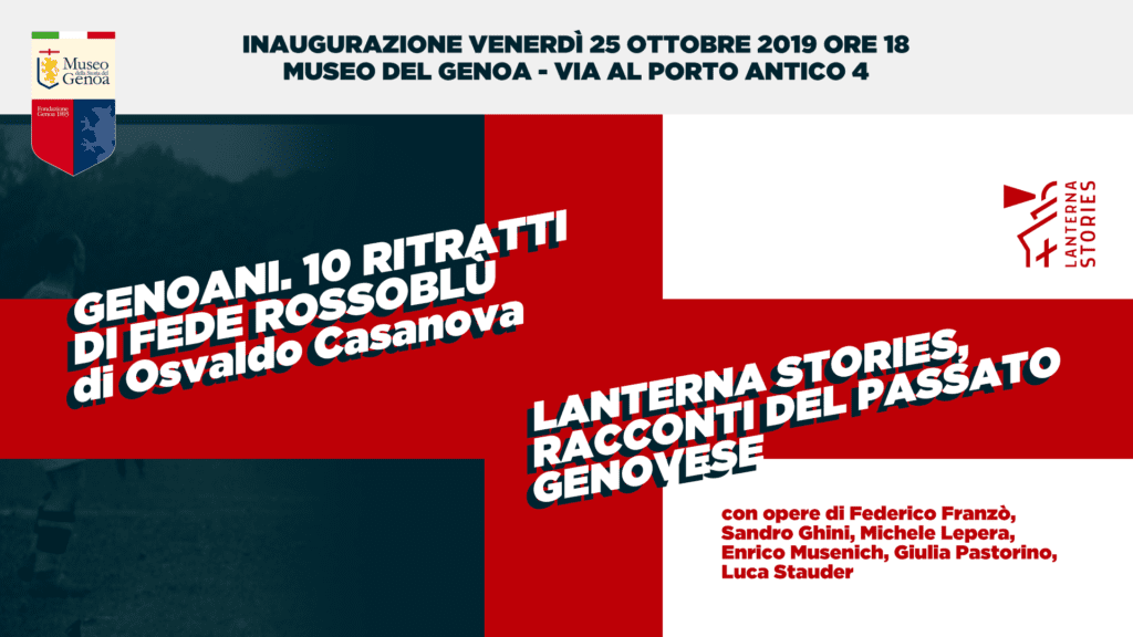 La seconda mostra, “Lanterna Stories. Racconti del passato genovese“, verrà a sua volta allestita al primo piano del Museo rossoblu. Le opere in esposizione nascono dalla collaborazione tra Lanterna Stories e artisti e illustratori che amano Genova e che hanno rappresentato attraverso il loro stile e la loro creatività alcuni episodi legati alla storia della città. In particolare gli elaborati si ispirano a racconti su Genova scritti e reinterpretati con estro e maestria da Francesco Nardi – musicista teatrale, attore e pedagogista – e Maria Grazia Tirasso – autrice e regista teatrale.