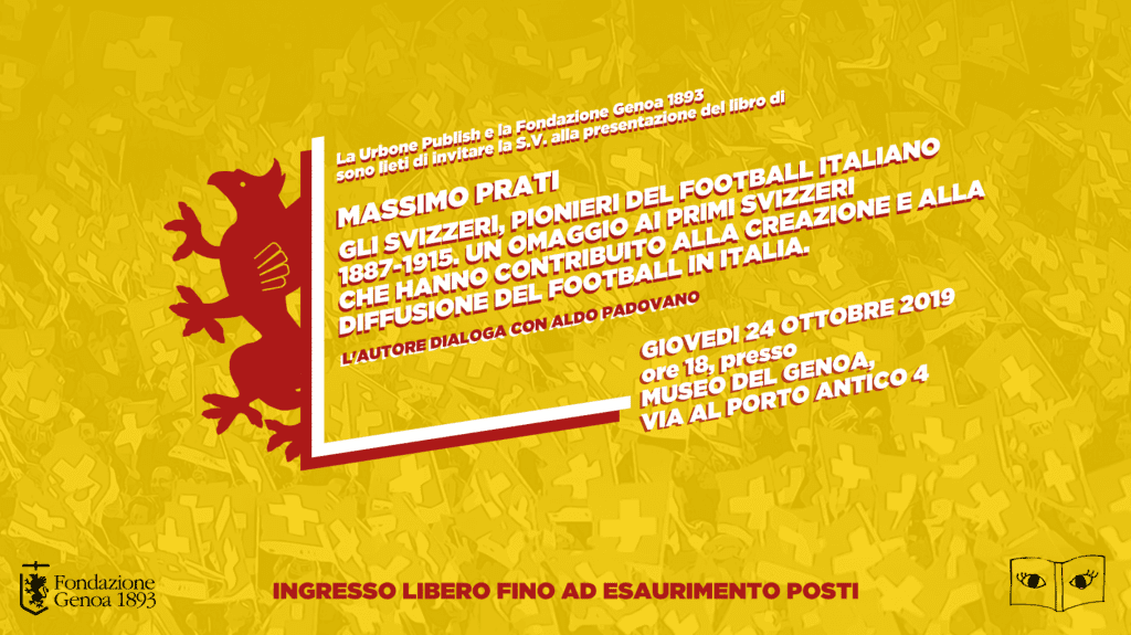 NUOVE PRESENTAZIONI DI LIBRI – Il calendario degli appuntamenti partirà giovedì 24 ottobre prossimo (ore 18) con la presentazione del volume “Gli Svizzeri pionieri del football italiano, un omaggio ai primi svizzeri che hanno contribuito alla creazione e alla diffusione del football in Italia