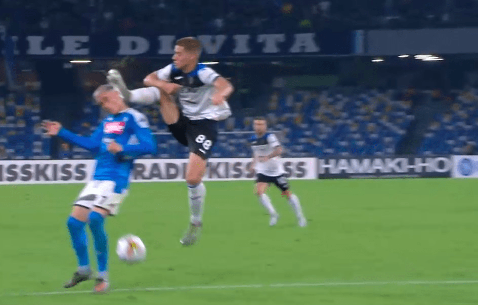 Al “San Paolo” va in scena un teatrino che al VAR fa cattivissima pubblicità. Al minuto 81′ l’Atalanta pareggia con Ilicic ribaltando un’azione d’attacco del Napoli dove si era verificato un atterramento palese di Kjaer ai danni di Llorente. Il difensore danese dimentica totalmente il pallone e va dritto sull’avversario, cinturandolo quanto basta per impedirgli di saltare. Il rigore sarebbe netto, Giacomelli è posizionato a poca distanza e con visuale libera, ma il gioco prosegue.