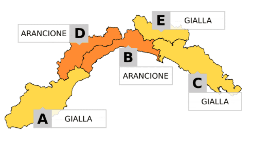 Genova – L’ARPAL ha diramato nel primo pomeriggio un ulteriore bollettino meteo sulla regione Liguria per le giornate di oggi 14 novembre e domani 15 novembre. Le zone interessate da uno stato di allerta arancione, a partire dalle ore 18.00 di oggi e fino alle 8.00 di domani, sono la B e D (Genova ed entroterra del Ponente, dalla val Bormida alla valle Stura). Allerta gialla sul resto della regione, di seguito il prospetto diviso in fasce orarie: