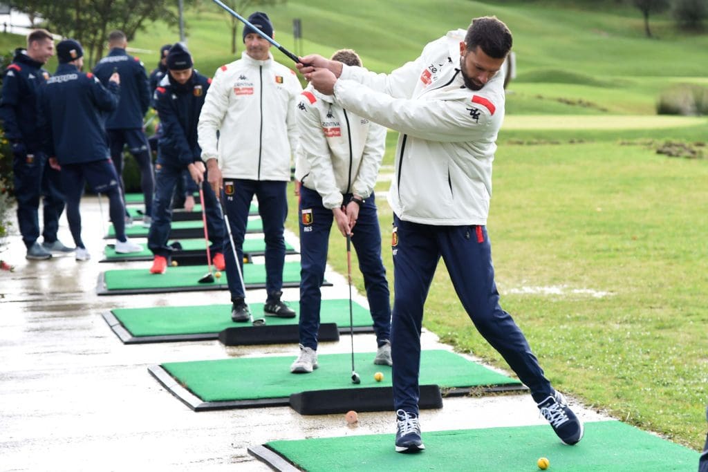 La partita in programma lunedì sera contro la SPAL si avvicina, domani pomeriggio torna la Serie A e mister Thiago Motta aveva già programmato da giorni una seduta mattutina di team building, golf e footgolf e al Club Sant’Anna nel comune di Lerca, tra Arenzano e Cogoleto. Staff e squadra in campo su un prato verde ben diverso dal canonico rettangolo di gioco: mazze e palline in mano, ma c’è spazio anche per giocare con il pallone. Una breve fase di riscaldamento, allunghi ed esercitazioni ha fatto spazio ad una serie di sfide tra giocatori sotto gli occhi di istruttori dedicati. Al termine di un allenamento decisamente inedito, come confermato dal sito ufficiale del Genoa mister Motta ha persino offerto un pranzo collettivo alla squadra. Domani, giornata in cui è stato dichiarato uno stato di allerta rossa sulla Liguria, il tecnico dovrebbe parlare in conferenza stampa dalle ore 13.30. Dalla mazza da golf al Mazza di Ferrara, il passo è brevissimo.