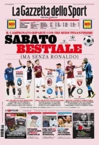 LE PRIME PAGINE DEI QUOTIDIANI SPORTIVI