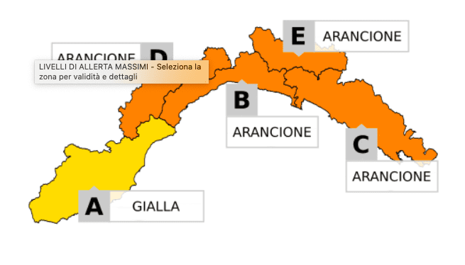 Sarà allerta arancione a partire dalle ore 8 di domani, per l’appunto mercoledì 27 novembre, e sino alle ore 18 sulle zone B, C ed E. Di fatto, le zone che fanno riferimento alla provincia di Genova, all’entroterra genovese e allo spezzino. Allerta gialla invece su Imperia e provincia.