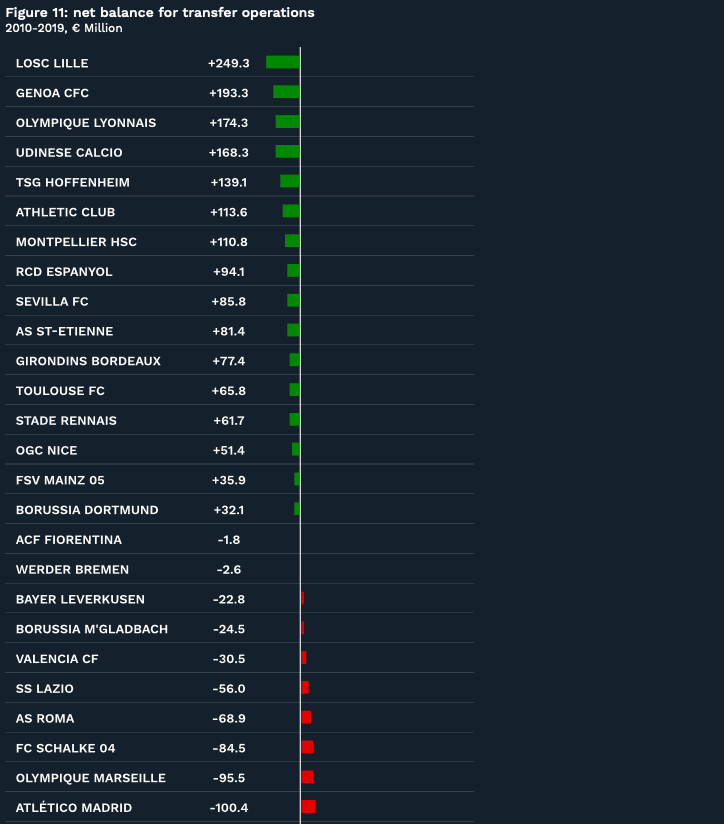 Si avvicina la fine della decade 2010-2019 e il CIES Football Observatory, attentissimo nell’elaborazione dei propri dati e numeri, ha stilato una classifica delle squadre dei cinque maggiori campionati europei sulla base di vari criteri. Uno di questi, in particolare, è il bilancio tra cessioni e acquisti delle società. Un bilancio in termini economici e finanziari.