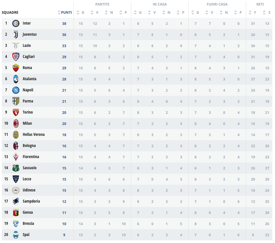 L’allenatore della Fiorentina viene confermato dalla dirigenza ma perde la partita contro il Torino (2-1) ed ulteriore terreno dalle alture di classifica, restando a 5 punti dal terzultimo posto occupato dal Genoa. I viola tornano a vedere i fantasmi della passata stagione, puniti dalle reti di Zaza ed Ansaldi e arrembanti solamente nel finale. Corini torna a Brescia e gli basta una partita per tornare a fare punti: vittima sacrificale è la SPAL, trafitta da un gol di Balotelli in uno scontro salvezza che rischia di costare molto caro a Leonardo Semplici.