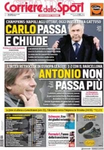 LE PRIME PAGINE DEI QUOTIDIANI SPORTIVI