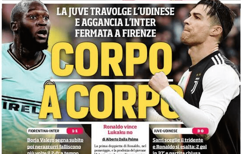 La Juventus aggancia l’Inter in testa alla classifica, il Napoli prova a chiudere per Torreira, la Roma rimonta sulla SPAL e si porta al quarto posto, il Milan festeggia in bianco il 120° anno di storia dopo un deludente pareggio contro il Sassuolo. Questa sera Cagliari-Lazio: i biancocelesti entreranno a pieno titolo nella corsa per lo Scudetto?