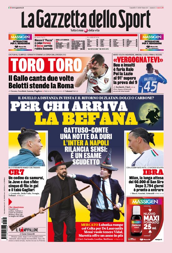 LE PRIME PAGINE DEI QUOTIDIANI SPORTIVI