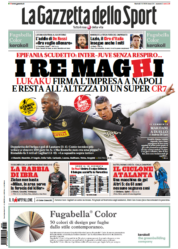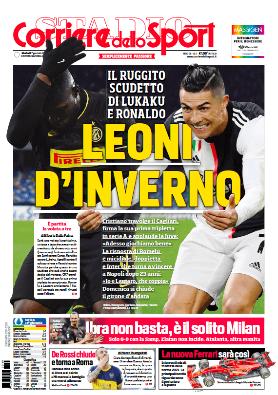 REPUBBLICA – All’interno dell’edizione genovese di Repubblica, invece, si parla di “rivoluzione” e di “Vangelo” Nicola (un lungo focus in cui vengono tracciate le differenze, di gioco e statistiche, tra il suo Genoa e quello di Andreazzoli e Motta) ed è lungo l’approfondimento sui colori rossoblu col consueto editoriale del collega Gessi Adamoli. I temi trattati sono quelli letti nelle ultime 48 ore: l’importanza dei tre punti conquistati col Sassuolo, ma la necessità di non sedersi sugli allori e dare a Nicola un centravanti quanto prima, magari spendendo più di quanto non si sia già fatto, visto che i giocatori assoldati sino ad ora sono tutti in prestito. E poi, ancora, risolvere il nodo sui giocatori in uscita, in particolare Jandrei e Marchetti per capire chi sarà il vice Perin (vista la situazione Radu, che Damiani ha annunciato lontano dal Genoa). Importante decidere anche il futuro di Schöne.