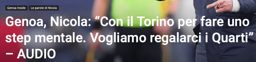 Un altro canale, quello social, efficace per ribadire che aver convocato 27 giocatori (clicca QUI per la lista completa) nell’ottica di tenerli lontano da Genova sino alla trasferta di Verona, rientra nel percorso di conoscenza e ricerca della coesione che Nicola ha voluto intraprendere in questi primi giorni da allenatore rossoblu. Un fattore determinante per avere fare uno step mentale e ritrovare le motivazioni per lottare coi denti per la salvezza.