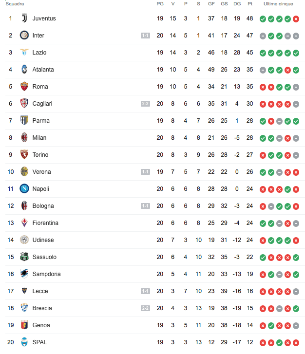 ALLE ORE 15 – Le partite del primo pomeriggio consegnano tre pareggi. Quello che farà più clamore è senza dubbio l’1-1 fra Lecce ed Inter al Via del Mare, dove i nerazzurri faticano a dismisura a trovare il vantaggio con Bastoni e vengono raggiunti nel finale da Mancosu. In attesa di Juventus-Parma, la squadra di Conte perde certezza e punti pesanti nella corsa per lo Scudetto. Bologna e Verona pareggiano al Dall’Ara: Bani segna nel primo tempo e vede rosso nel secondo, Borini entra e segna all’esordio agli ordini di Juric. 2-2 pirotecnico fra Brescia e Cagliari nel segno di Torregrossa e Joao Pedro, entrambi autori di una doppietta. Avanti i padroni di casa, poi rimontati dai rossoblu prima del definitivo pareggio. La partita di Balotelli, ammonito e poi espulso per proteste, dura 5 minuti.