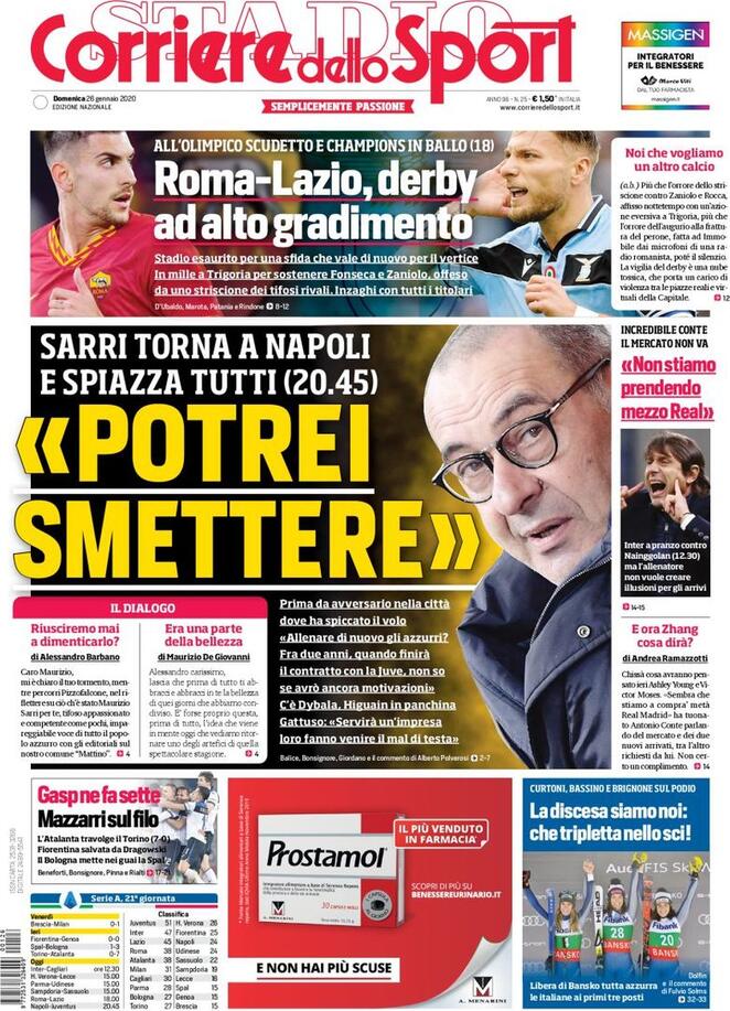 LE PRIME PAGINE DEI QUOTIDIANI SPORTIVI