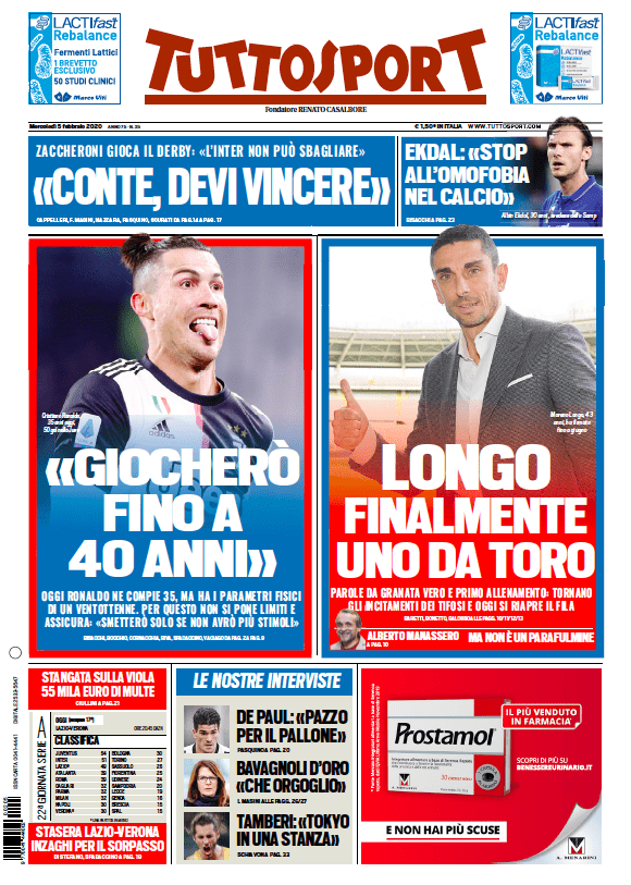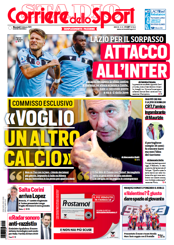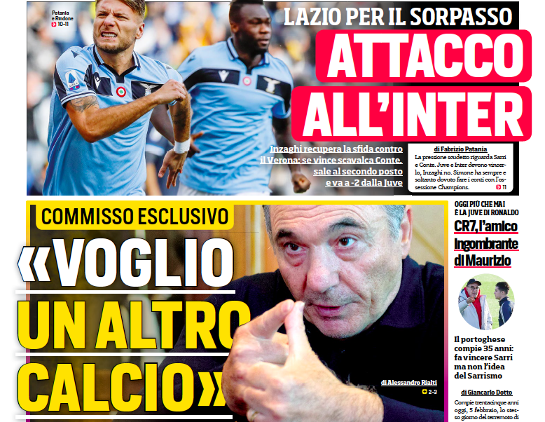 TUTTOSPORT – L’edizione odierna di Tuttosport parla degli squalificati per il 23° turno di Serie A inserendovi anche Behrami e Romero, dopodiché passa a trattare dell’appuntamento a Palazzo Ducale del prossimo 24 febbraio. Appuntamento che rientra nell’alveo della serie di incontri dal titolo “Allenatori, i guru del calcio in dialogo con gli intellettuali” e che vedrà partecipare Davide Nicola, allenatore del Genoa, affiancato dall’attrice e vice-presidente della Lega Pro, Cristina Capotondi.