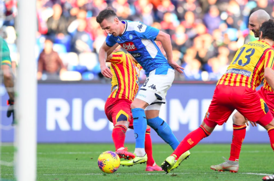 Da una mancata on field review all’altra. Arriviamo al San Paolo, dove il fischietto sardo Giua si impunta sulla propria versione dei fatti, non ascolta il collega Abisso al VAR e conferma che non è fallo quello di Donati su Milik. Di conseguenza, non è calcio di rigore, ma simulazione. L’aggancio tra la gamba di Milik e quella del difensore salentino è talmente evidente che non lascia spazio a dubbi, come evidenziano le foto.