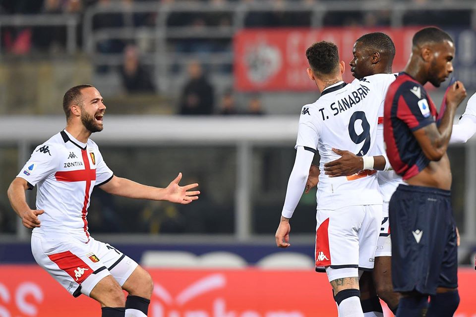 Al 51′ punizione dai 25 metri a favore dei padroni di casa per un intervento giudicato falloso di Masiello ai danni di Orsolini. La battuta è di seconda e il destro potente è di Barrow, ma Perin è attento nel chiudere. Al 53′ cartellino giallo per Goldaniga. Il Genoa è in controllo della partita e giostra il pallone sfruttano l’uomo in più e le difficoltà che il Bologna palesa nel difendere la profondità.