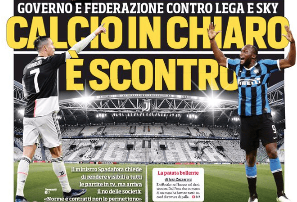 Il ministro dello sport Vincenzo Spadafora nella giornata di ieri ha chiesto al presidente della Lega Serie A Paolo Dal Pino “di verificare se favorevoli condizioni, rispettose della normativa vigente e degli accordi in essere, possano eventualmente consentire la libera fruizione televisiva di imminenti competizioni calcistiche di cui si prevede la disputa a porte chiuse”. La risposta della Lega non si è fatta attendere (diffusa a mezzo stampa via ANSA) rigettando la richiesta al mittente: “Pur comprendendo e condividendo le finalità alla base della richiesta del Ministro Spadafora, volta, in un momento di massima emergenza per il Paese, a valutare la possibilità di consentire la libera fruizione televisiva del campionato di Serie A TIM, la Lega Serie A rileva che il quadro normativo vigente, e gli obblighi contrattuali già assunti, non consentono di potervi aderire“.