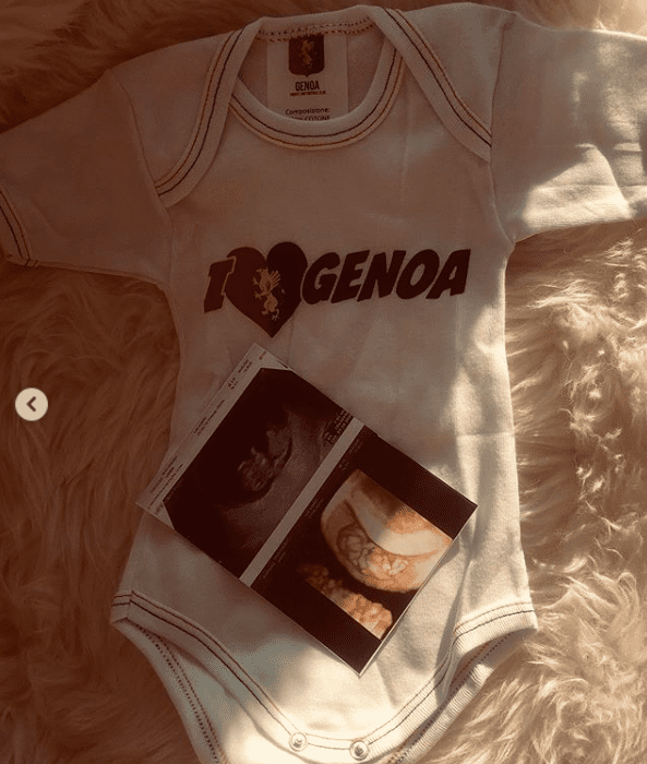 Sono state due le fotografie condivise da Lerager: una ritrae la moglie, Michelle, sposata l’estate scorsa in Danimarca, col pancione e il mare di Genova alle spalle. La seconda un piccolo pigiamino rossoblu con le foto delle prime ecografie. “La mia bella moglie è incinta. Aspettiamo un bambino per Ottobre: non vediamo l’ora di incontrarti“.