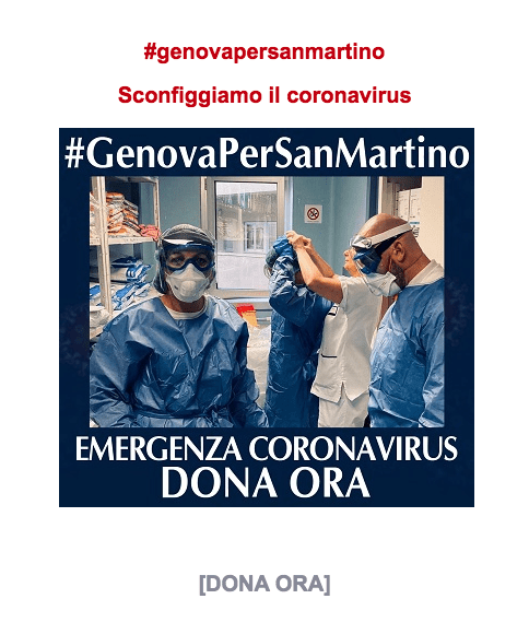 Anche Davide Nicola e il Genoa (per voce del capitano Criscito) appoggiano Genova e l’Ospedale San Martino partecipando alla raccolta fondi per sconfiggere il Coronavirus e l’emergenza sanitaria che sta attanagliando l’Italia ormai da giorni. “Sosteniamo con forza medici, infermieri e tutto il personale sanitario che lavora all’Ospedale San Martino – è il messaggio del mister rossoblu diffuso dal Genoa via Twitter – Loro stanno lottando con grande impegno e fatica nel combattere l’emergenza Coronavirus, ma anche noi possiamo fare la nostra parte facendo una donazione, andando semplicemente sul sito dell’ospedale oppure segnandoci l’IBAN IT02Y0617501594000002390480“. Nicola chiude con una riflessione: “Nessuna cosa che accade agli altri altri può lasciarci indifferenti. Se pensiamo questo, possiamo davvero dare un grande aiuto”. Al messaggio del mister si accoda quello del capitano Criscito: “Parlo a nome di tutta la squadra. Volevo dirvi che io sto a casa, fatelo anche voi aiutando così medici ed infermieri in prima linea per darci una mano. Facciamo di tutto, aiutiamo”.
