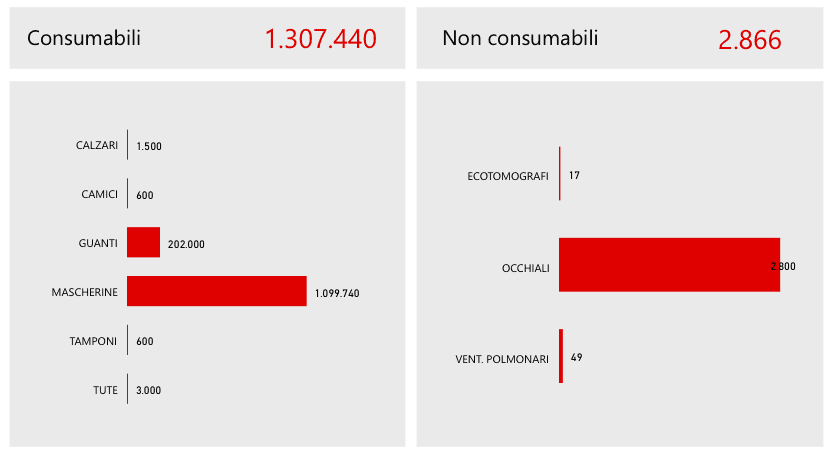 “Non avremo più asimmetrie su alcuna tipologia di informazioni che in questa vicenda è necessario che tutti coloro che ne hanno voglia possano condividere – ha spiegato Arcuri – Crediamo sia davvero giusto che queste informazioni vengano offerte direttamente, e senza mediazioni, ai cittadini che ne desiderano fare uso. E crediamo anche sia doveroso che queste informazioni vengano aggiornate nel minor tempo possibile“. Attualmente, in Italia, sarebbero stati distribuiti quasi 48 milioni di prodotti tra prodotti consumabili (calzari, camici, guanti, mascherine, tamponi e tute) e prodotti non consumabili (ecotomografi, occhiali, ventilatori polmonari). In Liguria, sempre attenendosi ai dati ADA, le dotazioni distribuite sino ad oggi sarebbero 1.447.078, delle quali oltre un milione risultano mascherine.