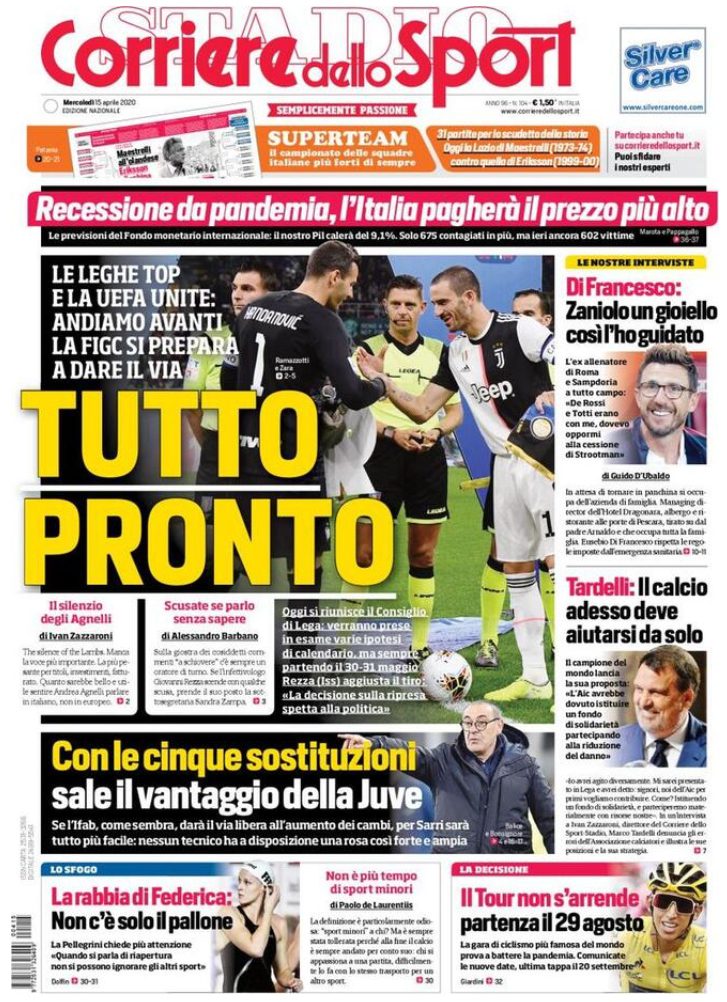 Mentre tra le pagine di Repubblica è tornato ad esprimersi Gabriele Gravina, presidente FIGC (clicca QUI per leggere una sintesi dell’intervista), i quotidiani sportivi nazionali analizzano la situazione del campionato di Serie A e del calcio nazionale. Molte le prese di posizione, compresa quella di Federica Pellegrini, campionessa del nuoto italiano, che si è detta dispiaciuta di sentire parlare solo di calcio.