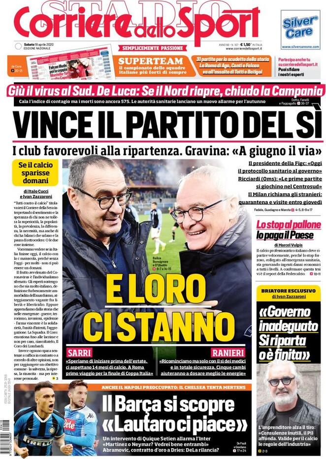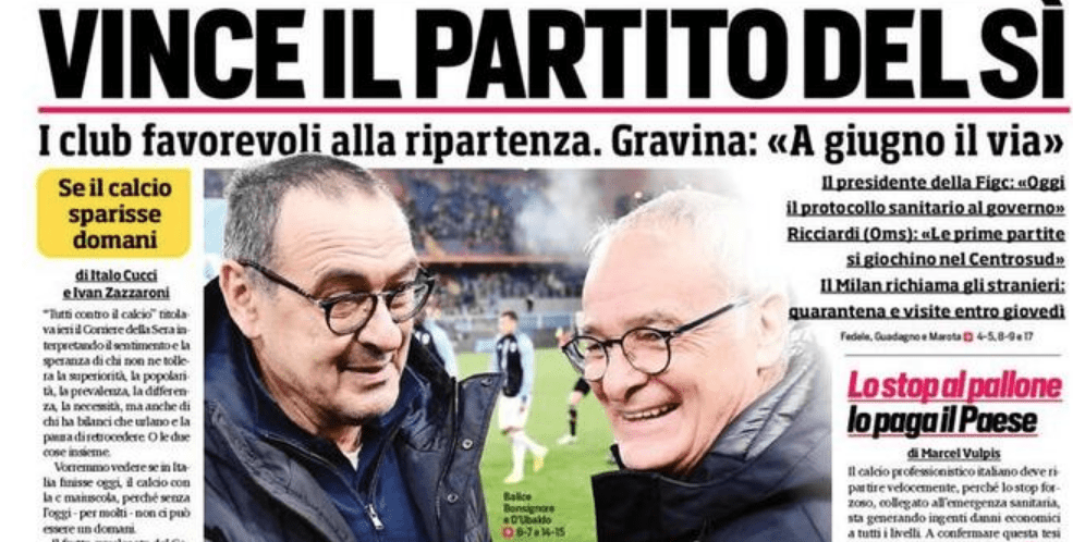 Mentre si allarga fronte del sì, celebrato sulle prime pagine del Corriere dello Sport che sottolinea come una mancata ripartenza costerebbe al calcio oltre 300 milioni di euro, al fisco il 37% di questi e sarebbero a rischio oltre 46mila posti di lavoro. Il presidente della FIGC Gabriele Gravina ribadisce: “Chi invoca lo stop al calcio non vuol bene agli italiani”. Fra gli oltranzisti anche il presidente del Torino Urbano Cairo e quello del Brescia Massimo Cellino. Ricciardi (OMS) ha confermato nella giornata di ieri: “Si è avanzata la proposta di giocare solamente al Centro-Sud”. Il Milan convoca gli stranieri in Italia e prepara test e visite mediche, la Roma accetta il taglio degli stipendi per il mese di marzo spalmandosi le prossime due mensilità nel 2020/2021: il denaro risparmiato dalla società, come spiegato sui principali quotidiani sportivi nazionali, servirà per aiutare circa 200 i dipendenti a venire pagati regolarmente. Vigorito invoca la A per il suo Benevento, la Serie D azzarda un rientro in campo per evitare il tracollo. Il presidente di Lega Nazionale Dilettanti e vice-presidente della FIGC Cosimo Sibilia ha fatto la conta dei danni: a rischiare di restare senza lavoro, stipendio e certezze sarebbero infatti 12mila società, 65mila squadre e circa un milione di tesserati. In Premier League il Newcastle viene acquistato da un fondo di cui fa parte anche il principe d’Arabia Mohammed bin Salman: sarà l’unico club a cambiare proprietà ai tempi del Coronavirus?