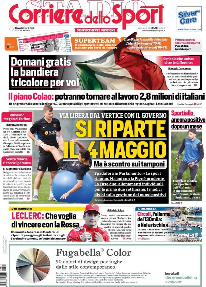 Le due ore di incontro fra il ministro dello sport Vincenzo Spadafora e i vertici del calcio italiano sono serviti a confermare come non sia ancora possibile trovare una data sicura per la ripresa degli allenamenti e, successivamente, anche del campionato di Serie A. Le società chiedono garanzie, il Governo prende altro tempo. Se su questo punto i quotidiani sportivi sono concordi, si dividono fra quella del 4 maggio (in prima pagina sul Corriere dello Sport) e quella del 18 maggio (data “praticamente certa” secondo Tuttosport). La Gazzetta fa invece una distinzione sugli allenamenti individuali e quelli collettivi, che con tutta probabilità in Italia non saranno ammessi prima di un nuovo decreto previsto nel mese di maggio. Apprezzato il lavoro del Comitato Tecnico-Scientifico istituito dalla FIGC, restano ancora molti dubbi da chiarire fra cui quello sugli stipendi, sui contratti in scadenza, sul calciomercato, sui viaggi e sulle misure da prendere in caso di nuovo lockdown. Ma cosa succede, come nel caso di Sportiello, se un tesserato risulta o risulterà positivo al Coronavirus di un tesserato? Uno dei più spinosi riguarda poi i tamponi da effettuare: le società sarebbero pronte a pagare per un numero ben superiore a quanto necessario per i suoi tesserati, così da poterne donare una buona parte al territorio. Capitolo televisioni? Le richieste di sconto avanzate da Sky sono state ritenute inopportune dai club. La Lega B chiede sia garantita una parte dei diritti tv delle future neo-promosse nel rispetto degli accordi stilati nel 2009, il presidente del Pordenone Lovisa vuole tornare a giocare per sognare la promozione. La Lega Pro fa la conta dei danni economici, la Lega Nazionale Dilettanti si dice pronta a tornare in campo.