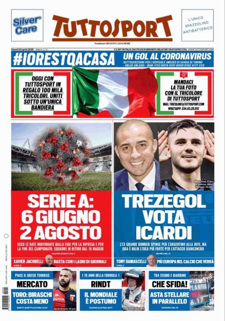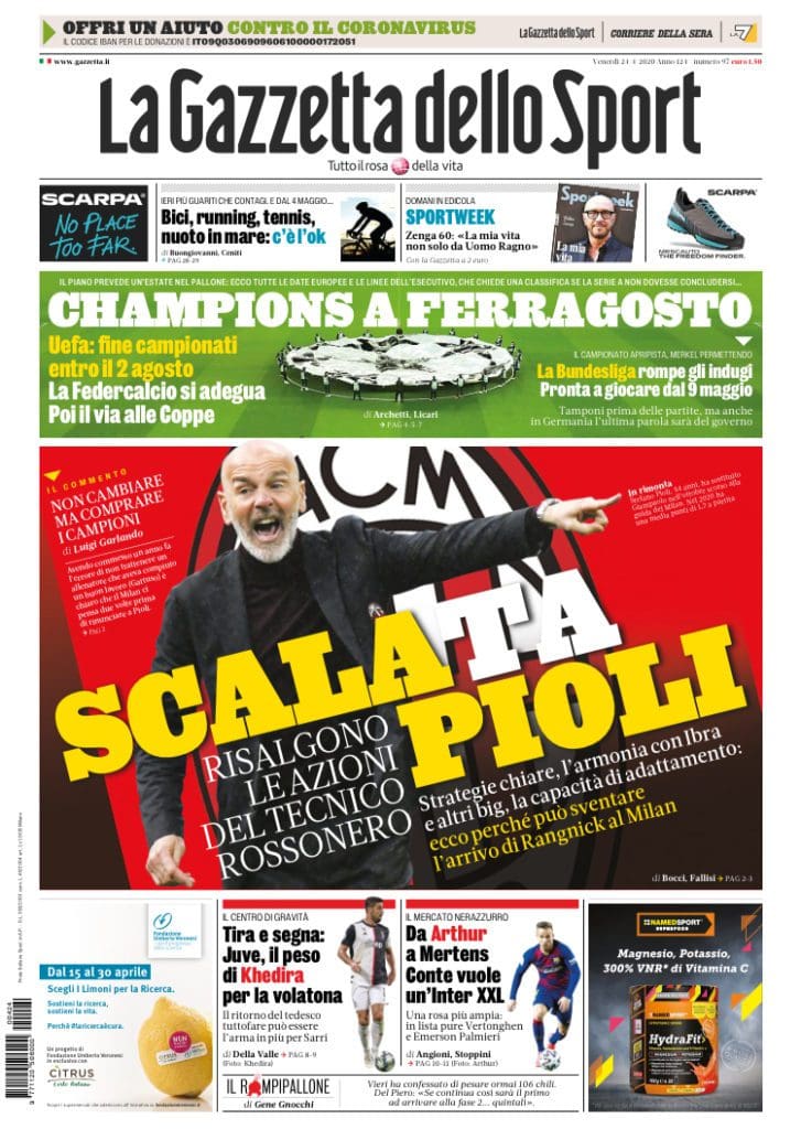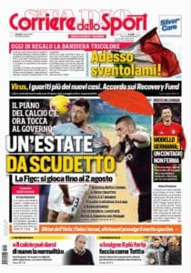 La rassegna stampa odierna si concentra ancora una volta sull’ipotesi di tornare a giocare in estate, sino alle porte di agosto, e terminare la Serie A. Non manca neppure l’ennesimo botta e risposta a distanza tra Malagò, presidente CONI, e Gravina, presidente FIGC. “Il calcio è diverso da tutti, anche col proprio protocollo medico” rilancia il primo. “Parla di noi per avere notorietà in modo gratuito” risponde il secondo. Le linee guida dettate dalla UEFA sono state immediatamente recepite dalla FIGC, che ha intenzione di deliberare lo spostamento della data finale della stagione sportiva al 2 agosto (anziché al 30 giugno).