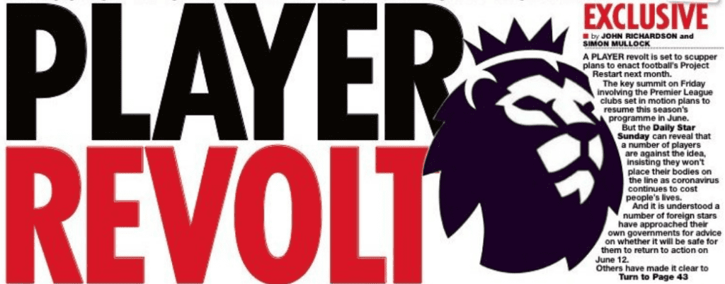 Se in Germania il Colonia si allena nonostante la notizia di 3 contagiati in squadra (mercoledì atteso il via libera o meno dalla Merkel) ed anche la Spagna si prepara a riprendere i lavori, in Inghilterra si teme una vera e propria rivolta da parte di gran parte dei calciatori delle squadre di Premier League: come riportato da numerosi quotidiani fra cui il Daily Star, “un buon numero di giocatori sono contro l’idea di tornare a giocare e insistono sul fatto che non metteranno piede in campo fino a che il Coronavirus continuerà a colpire vite umane”.