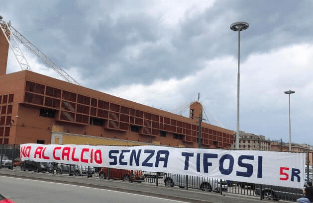 A pochi passi dal monumento dedicato a Claudio Spagnolo, fuori dallo stadio Ferraris, è stato esposto uno striscione, che sta circolando via socia, col quale si ribadisce “no al calcio senza tifosi“. Un messaggio che riprende, per l’appunto, il contenuto del comunicato congiunto di oltre 150 curve di tutta Europa diffuso lo scorso mercoledì.
