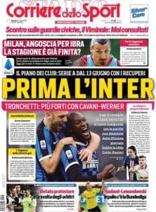 La Gazzetta dello Sport sottolinea come oggi – non casualmente il giorno in cui è fissato il Consiglio di Lega Serie A – scada l’ultimatum alle televisioni per il pagamento dell’ultima tranche dei diritti tv. In caso di mancato pagamento, scatterà l’ingiunzione di pagamenti, o almeno questo era l’iter annunciato dalla Lega Serie A. Nel frattempo prende corpo l’ipotesi che il 13 giugno ripartano le gare di Serie A coi recuperi della quattro gare rinviate del 26esimo turno (Torino-Parma, Hellas Verona-Cagliari, Inter-Sampdoria e Atalanta-Sassuolo). Dal 20 giugno, poi, si ripartirebbe tutti alla pari con lo stesso numero di partite giocate e sarebbe a quel punto il turno anche di Genoa-Parma.