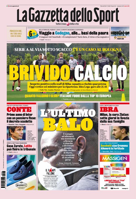 All’interno dei quotidiani sportivi, poi, tornano anche il caso Balotelli (avrebbe abbandonato la chat del Brescia e si sarebbe presentato agli allenamenti fuori forma, deludendo soprattutto Cellino) e la questione dei diritti tv. Se DAZN e Img non hanno richiesto sconti, ma hanno promesso che pagheranno, il vero braccio di ferro è quello con Sky. Sono ben 9 club su venti in Serie A, scrive stamane il Corriere dello Sport, ad aver già fatto emanare decreti ingiuntivi direttamente dagli istituti di credito, dai quali si erano fatti anticipare i soldi. Si tratta di un problema di liquidità diffuso nel massimo campionato italiano.