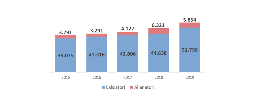 Se una parte del costo è dovuto agli innumerevoli cambi sulla guida tecnica (negli ultimi tre anni i compensi per allenatori sono stati 16,3 milioni pari ad una media di 5,4 milioni di euro all’anno), il grosso dell’aumento è sugli stipendi di calciatori, passati da 40 a 52 milioni di euro nell’arco del quinquennio.