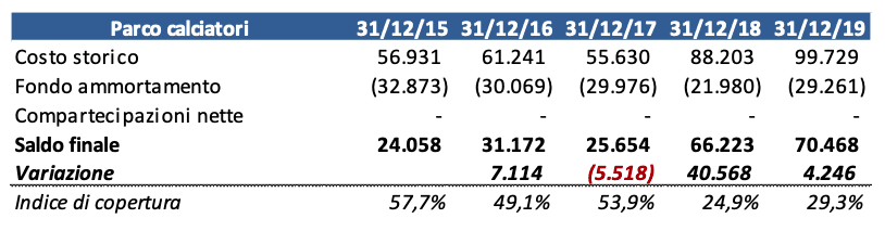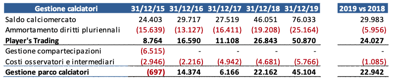 Allo stato attuale non è facile capire che impatti potranno esserci sul calciomercato a seguito dell’emergenza COVID-19, ma spesso la società è riuscita ad ottenere significative plusvalenze, quindi è ragionevole ipotizzare che questo importo sia una base di riferimento sufficientemente solida.