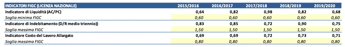 Per quanto riguarda la Licenza Nazionale, basandoci sul bilancio 2019 e sugli indicatori attualmente esistenti, il Genoa non dovrebbe avere problemi nell’ottenimento in quanto rispetta, come gli anni passati, i tre indicatori di bilancio che sono previsti dalle norme federali.