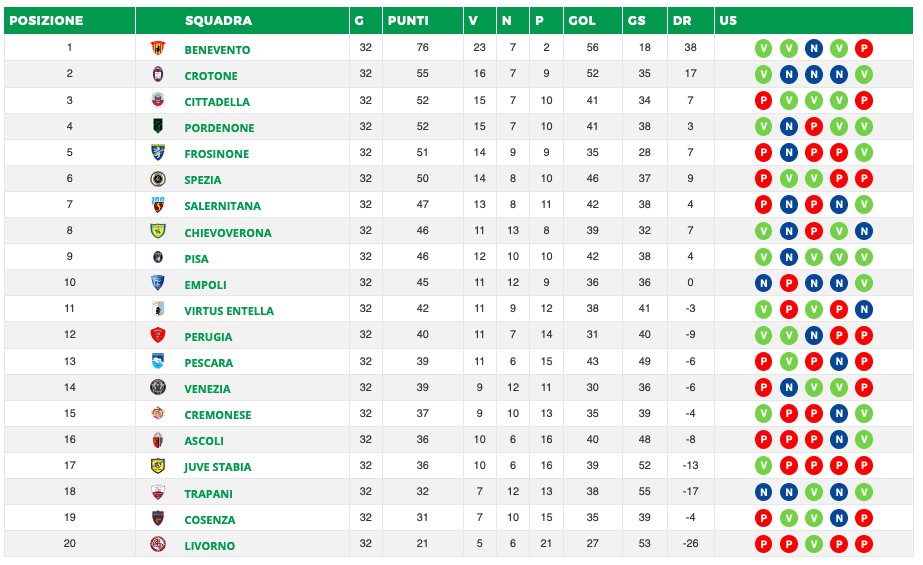 Dopo le sconfitte con Pordenone e Pisa, che nello scorso turno hanno rispettivamente fatto le penne a Virtus Entella e Spezia, le due squadre liguri sono tornate in campo nella serata di venerdì: la formazione di Boscaglia ospitava il Chievo al Comunale, mentre i bianconeri di Italiano andavano in scena allo Stirpe di Frosinone.