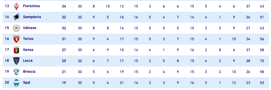 Genoa che conquista un punto lontano da casa e per la sesta partita di fila lontano dal Ferraris non perde. Seconda rimonta dopo quella di Brescia per la squadra di mister Nicola, che ha regalato per intero la prima frazione e nella seconda, cambiando modulo, ha trovato qualche spunto in più per andare in gol. Quarto penalty concesso nel post-Covid alla squadra rossoblu, che per lunghi tratti della partita ha dato la sensazione di avere poche idee. Idee che si sono schiarite leggermente solo con l’ingresso di Pandev. Romero dovrebbe aver accusato qualche problema fisico prima della fine. Classifica che dice che il Grifone è a -4 dal Torino, ma a +2 sul Lecce. Alle spalle resta ferma a 19 punti la Spal, avversaria del Genoa il prossimo 12 luglio al Ferraris, mentre sale a 21 il Brescia che batte 2-0 l’Hellas Verona.