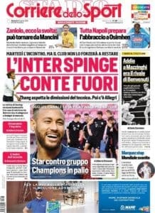 La rassegna stampa odierna si occupa anzitutto della posizione di Antonio Conte, che in meno di una settimana dovrebbe conoscere il proprio futuro. Futuro che, stando a quanto si legge, sembrerebbe lontano dall’Inter. Inter alla quale si avvicina Massimiliano Allegri. Si parla poi anche della finale di Champions League che si giocherà stasera tra Bayern Monaco e PSG, di Zaniolo che può tornare da Mancini, di Osimhen che si prepara ad essere accolto dal Napoli. Spazio infine a Cristiano Ronaldo, che tornerà alla Juventus. Più dubbi sul ritorno di Ibrahimovic al Milan.