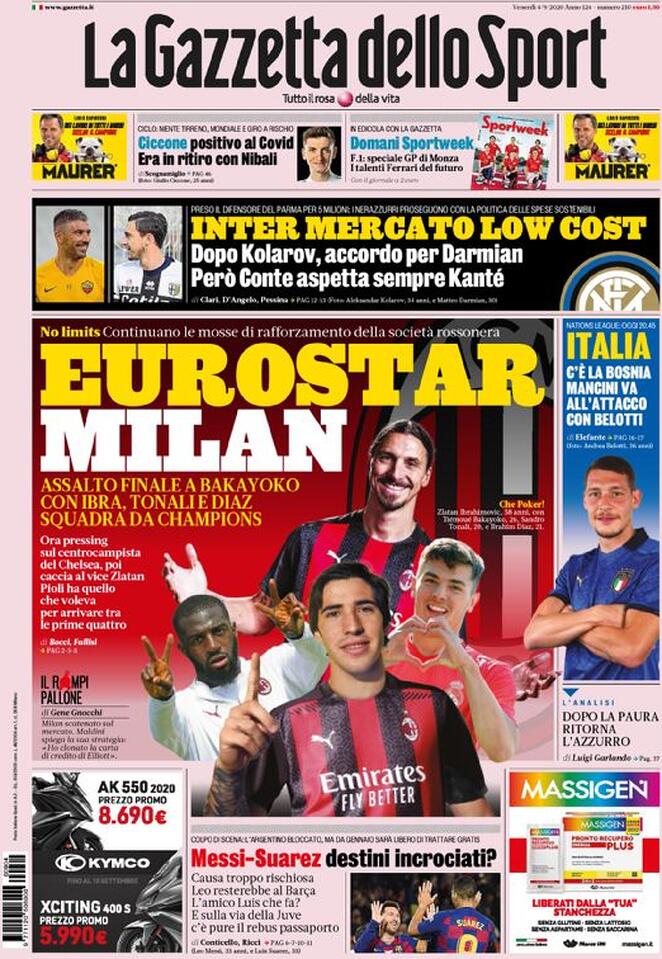 LE PRIME PAGINE DEI QUOTIDIANI SPORTIVI