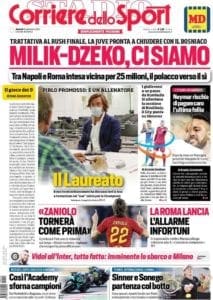 Prime pagine focalizzate ormai sulla prima giornata di campionato, alla quale arriveranno Juventus e Inter da favorite per la lotta scudetto. Ma le tematiche sono anche altre, soprattutto quella legata agli attaccanti che dovranno approdare in casa Roma e Juventus. Milik avrebbe detto sì all’offerta dei giallorossi e il suo arrivo libererebbe Dzeko, pronto ad accasarsi alla Juventus. Ibrahimovic e Tonali suonano la carica rossonera, Murru verso il Torino, Pirlo consegue il patentino da allenatore (e con lui anche l’ex Genoa Thiago Motta).