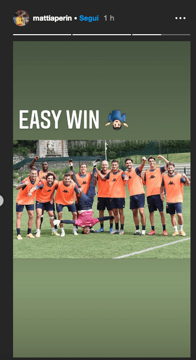 In attesa di ufficializzazione del passaggio in prestito dalla Juventus al Genoa, Luca Pellegrini è sceso in campo al Signorini di Pegli con il resto della squadra, come testimoniato via social dai vari giocatori rossoblu nelle fotografie pubblicate al termine della seduta. C’è anche il laterale sinistro nella squadra (con pettorina arancione) che ha vinto la partitella in famiglia: in porta Perin, in attacco la coppia Pjaca-Destro. Nel mezzo l’esperienza di Schöne e la voglia dei più giovani come Brlek e Melegoni. Con una squadra così “si vince facile” scrive su Instagram il portiere genoano, che nella foto di gruppo si mette a testa in giù. A tenergli ferme le gambe sono gli esterni Ghiglione e proprio Pellegrini, la new entry nella formazione rossoblu. Su e giù sulla fascia. Una questione di equilibrio.