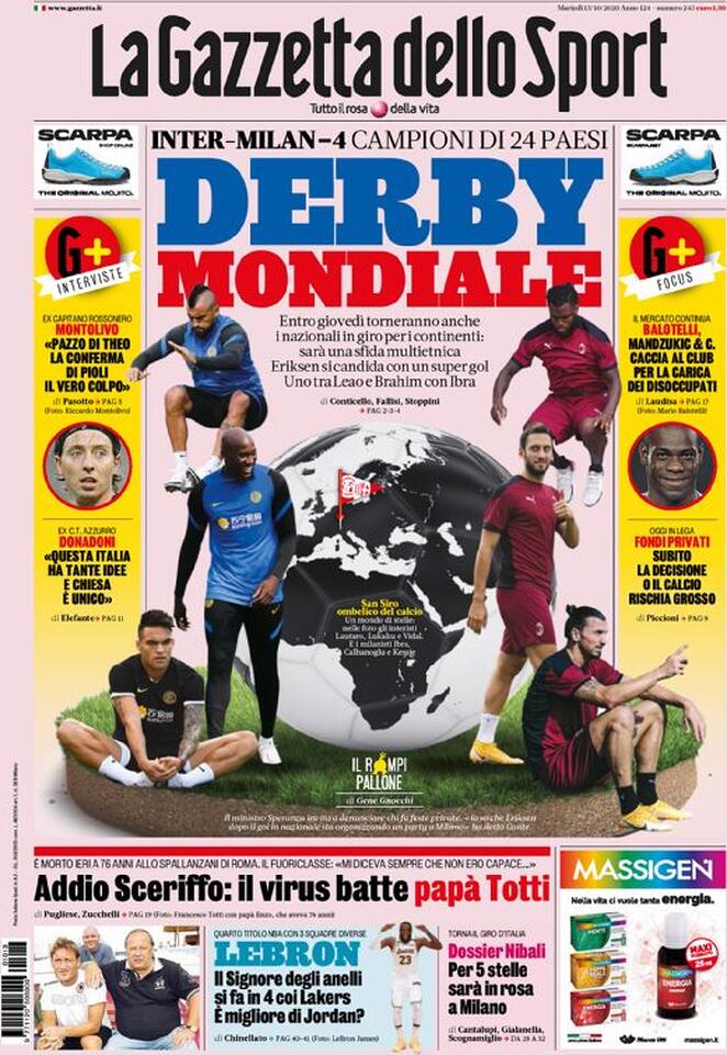 LE PRIME PAGINE DEI QUOTIDIANI SPORTIVI