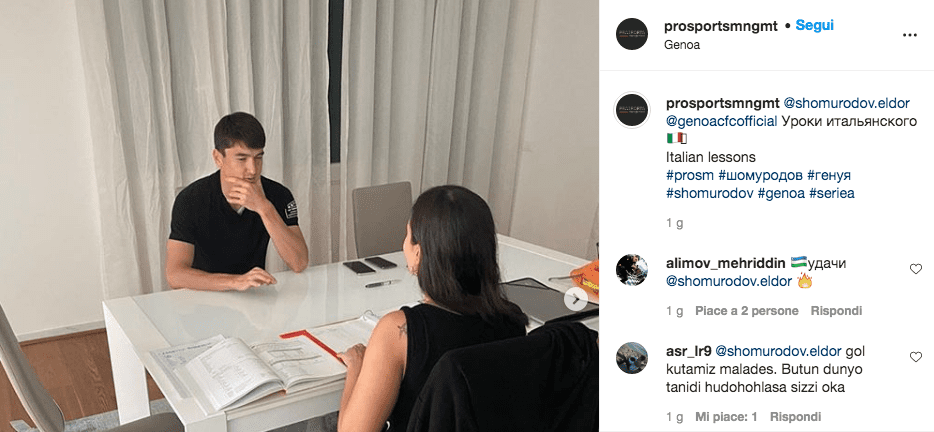 Eldor Shomurodov con tutta probabilità sarà costretto a saltare il derby contro la Sampdoria per un problema muscolare, che si aggiunge a quello di Zappacosta (clicca qui). L’attaccante del Genoa, atterrato in Italia nel primo giorno di ottobre dopo un lunghissimo viaggio dalla Rostov sul Don, ha avuto poco tempo per calarsi in uno stile di vita completamente differente. Oggi deve anche fare i conti con una nuova lingua da imparare oltre al russo e a qualche sprazzo d’inglese. Dopo i primi due spezzoni di partita in maglia rossoblu Eldor punta a recuperare il prima possibile ma, costretto per qualche giorno ai box, ne sta approfittando per prendere lezioni di italiano con un’insegnante dedicata. Si lavora sul labiale, sui numeri e sulle parole chiave per prendere al volo i messaggi ricevuti sul campo. In sicurezza, ai due estremi del tavolo come testimoniato dai profili social del suo studio di procuratori, Shomurodov ha cominciato ad articolare le prime frasi. “Ho 25 anni e sono un giocatore di calcio”. Molto sintetiche, ma è bene partire dalle fondamenta.