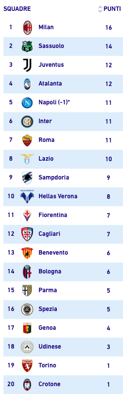 SASSUOLO SECONDO – Alle ore 18 spiccano i successo della Roma e del Sassuolo contro Fiorentina e Napoli. All’Olimpico decidono le reti di Spinazzola e Pedro, mentre al San Paolo la formazione neroverde (in emergenza offensiva) esce con un convincente 2-0 firmato da Locatelli e Maxime Lopez. De Zerbi sale al secondo posto, Fonseca aggancia Napoli e Inter a undici punti.