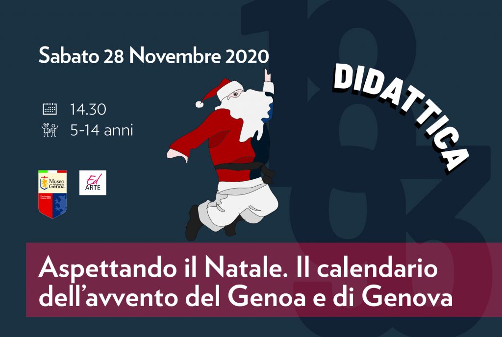 Sabato 28 novembre alle 14.30, sulla pagina Facebook del Museo del Genoa, si terrà il laboratorio didattico “Aspettando il Natale: il calendario dell’avvento del Genoa e di Genova” a cura dell’Associazione EdArte (clicca qui per maggiori informazioni). Clicca qui per scaricare i materiali: testi e immagini