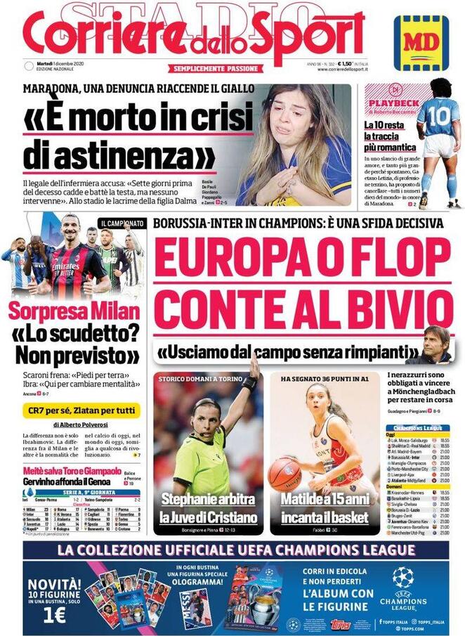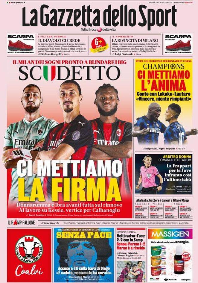 LE PRIME PAGINE DEI QUOTIDIANI SPORTIVI