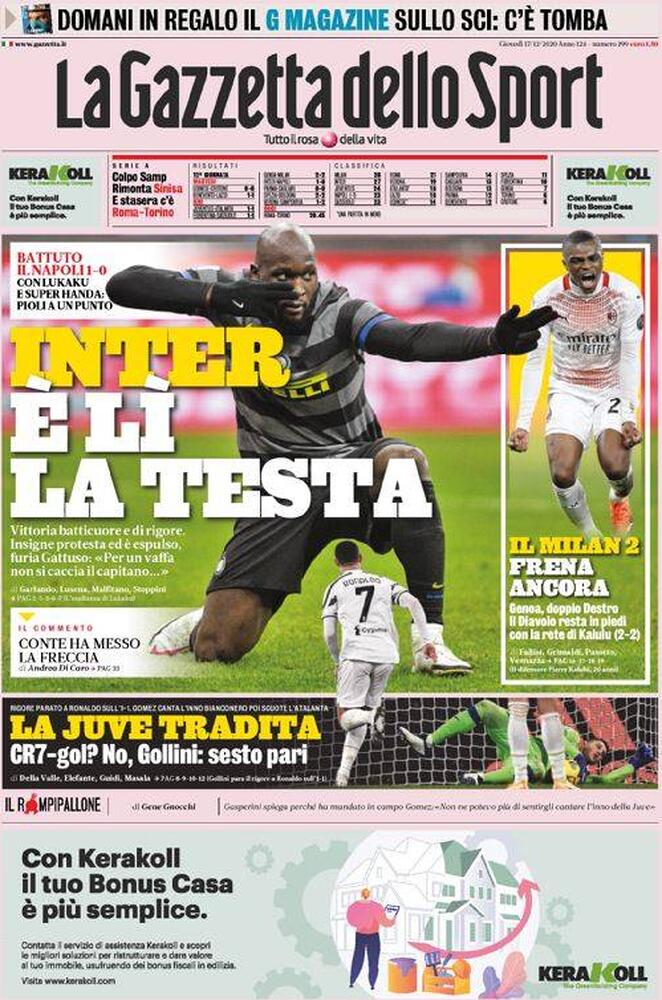 LE PRIME PAGINE DEI QUOTIDIANI SPORTIVI