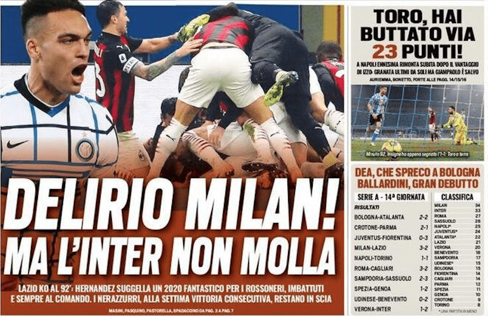 LE PRIME PAGINE DEI QUOTIDIANI SPORTIVI