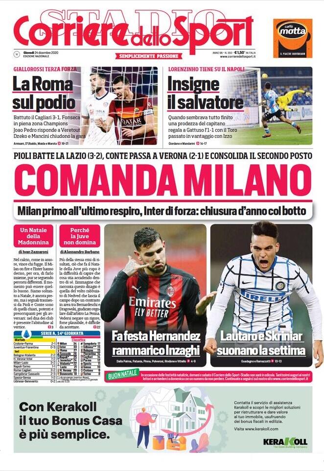 GAZZETTA DELLO SPORT – “Il Genoa ora Balla e lo Spezia si arrende” facendo un capitombolo in classifica. Terzi prova a trattenersi ma si scontra con Behrami: il rigore è giusto e Criscito lo trasforma, regalandosi la prima rete stagionale. I rossoblu incartano gli avversari con un atteggiamento solido e pratico, riuscendo a rimanere attenta anche quando gli avversari si sbilanciavano alla ricerca del pareggio. Il gol di Nzola non ha dato i suoi frutti, per colpa della pressione e delle verticalizzazioni della squadra di Ballardini. Il tecnico, con l’infermeria ancora piena, sta provando a dare un’impronta a una squadra che fino a pochi giorni fa pareva “avvilita e involuta”. E la stagione forse non è compromessa. Il migliore in campo è Pandev, in coppia con Balla.