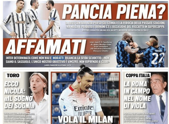 LE PRIME PAGINE DEI QUOTIDIANI SPORTIVI